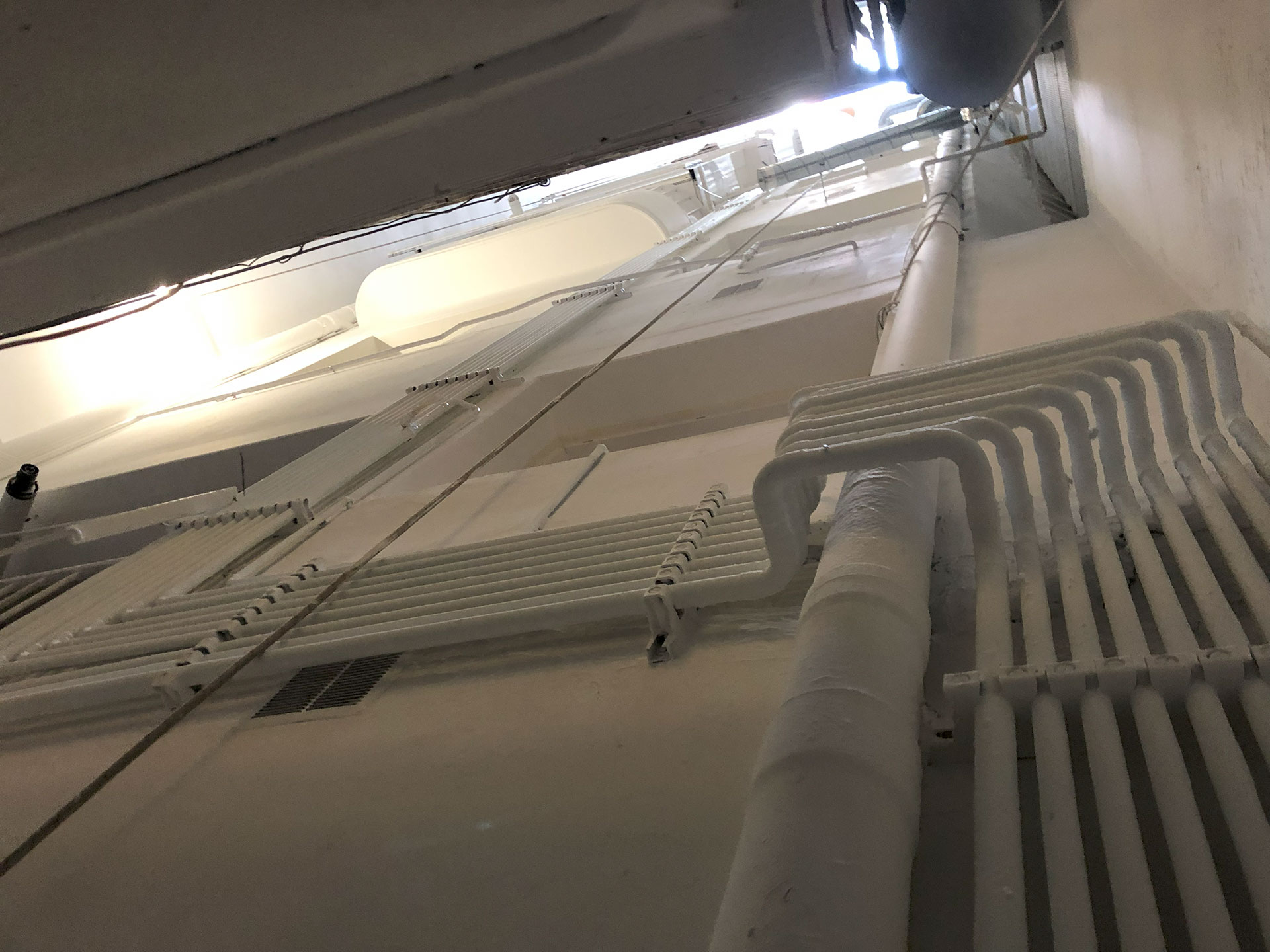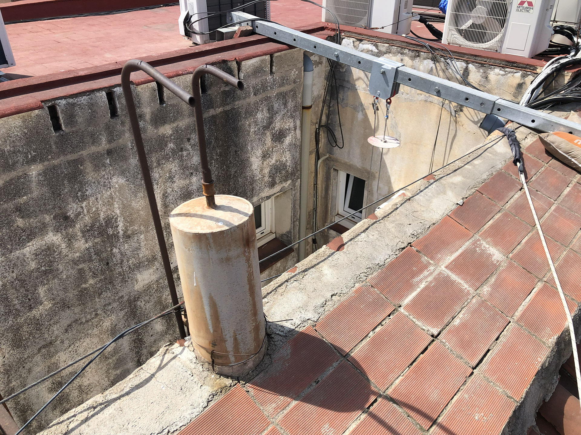 Rehabilitació de patis de llums i instal·lació de xemeneies en un edifici de Nivell C